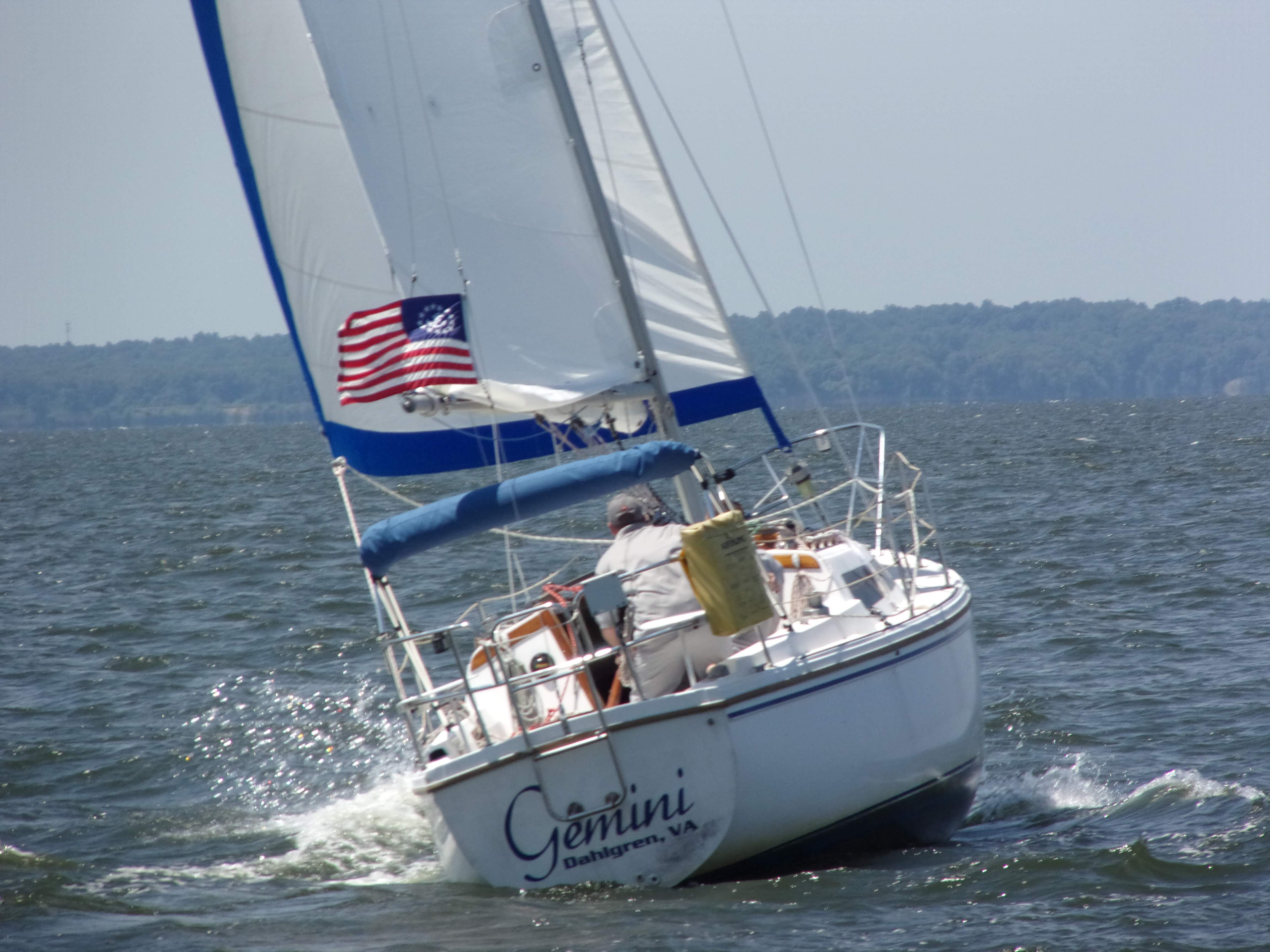 Last night was the first race of Dahlgren Yacht Club's Spring Low Points PHRF season. It was our first race with Gemini, and it was an eventful first race. Gemini finished second, of two. The average wind speed during last night's race was 19 kts, so it was quite sporty. The water had two foot … Continue reading 2019 DYC SPLP 1