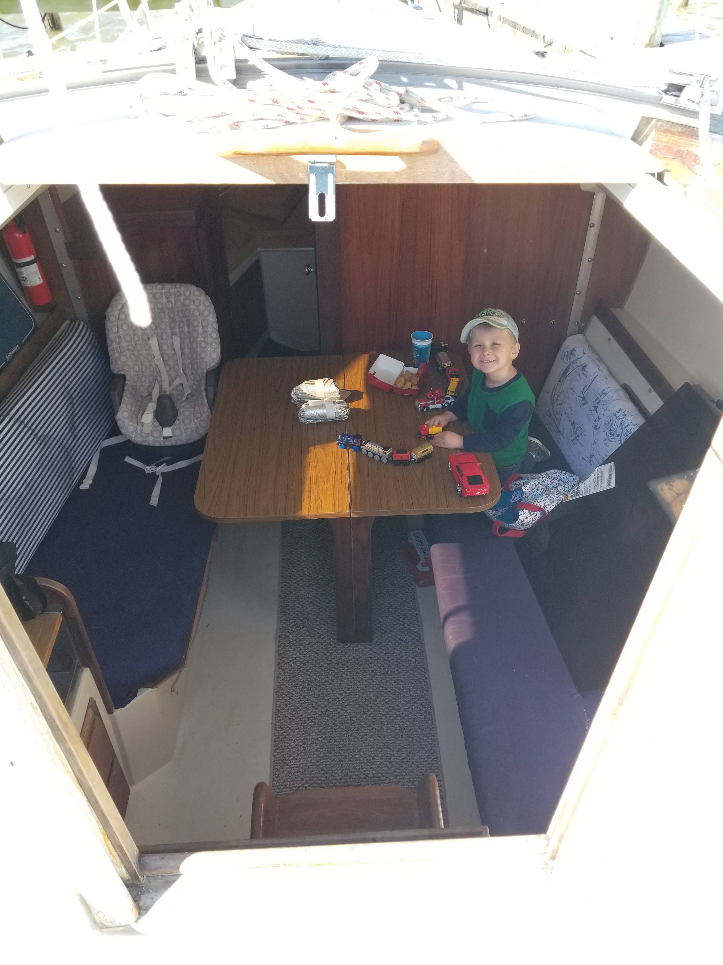 With two boys and a beagle, it was time for a boat where we could stretch out a little bit. Gemini is a 1985 Catalina 27 with a Universal M-18 inboard diesel, and she has the room we need. When we bought Gemini, she went by a different name, had an inboard the didn’t run, and was overall a victim of neglect. The first day at the boat as a family, George made himself right at home playing with his trucks in the galley. I have already spent quite a bit of time this winter on a refit to get her back into ship shape. We plan to spend many weekends and day trips aboard her, teaching our sons how to sail.